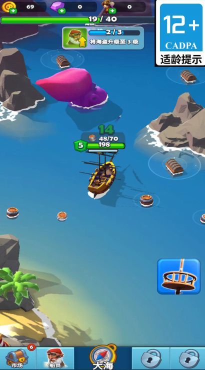 2.每个关卡挑战设计,如海盗战斗、恶劣天气、海怪兽,考验玩家策略与反应;